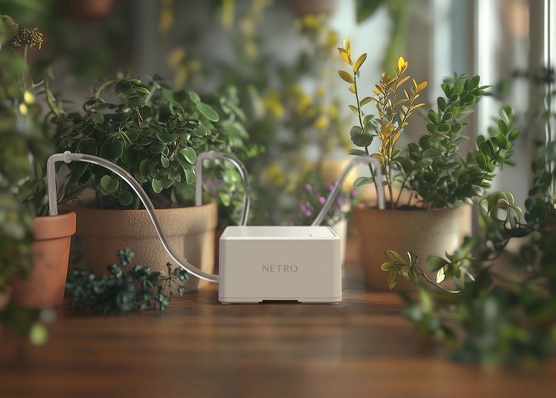– Irrigation pump, holder, power adapter and cable, tubing, connectors, drip emitters, filter, plastic plugs
